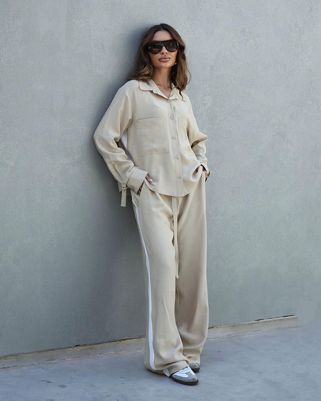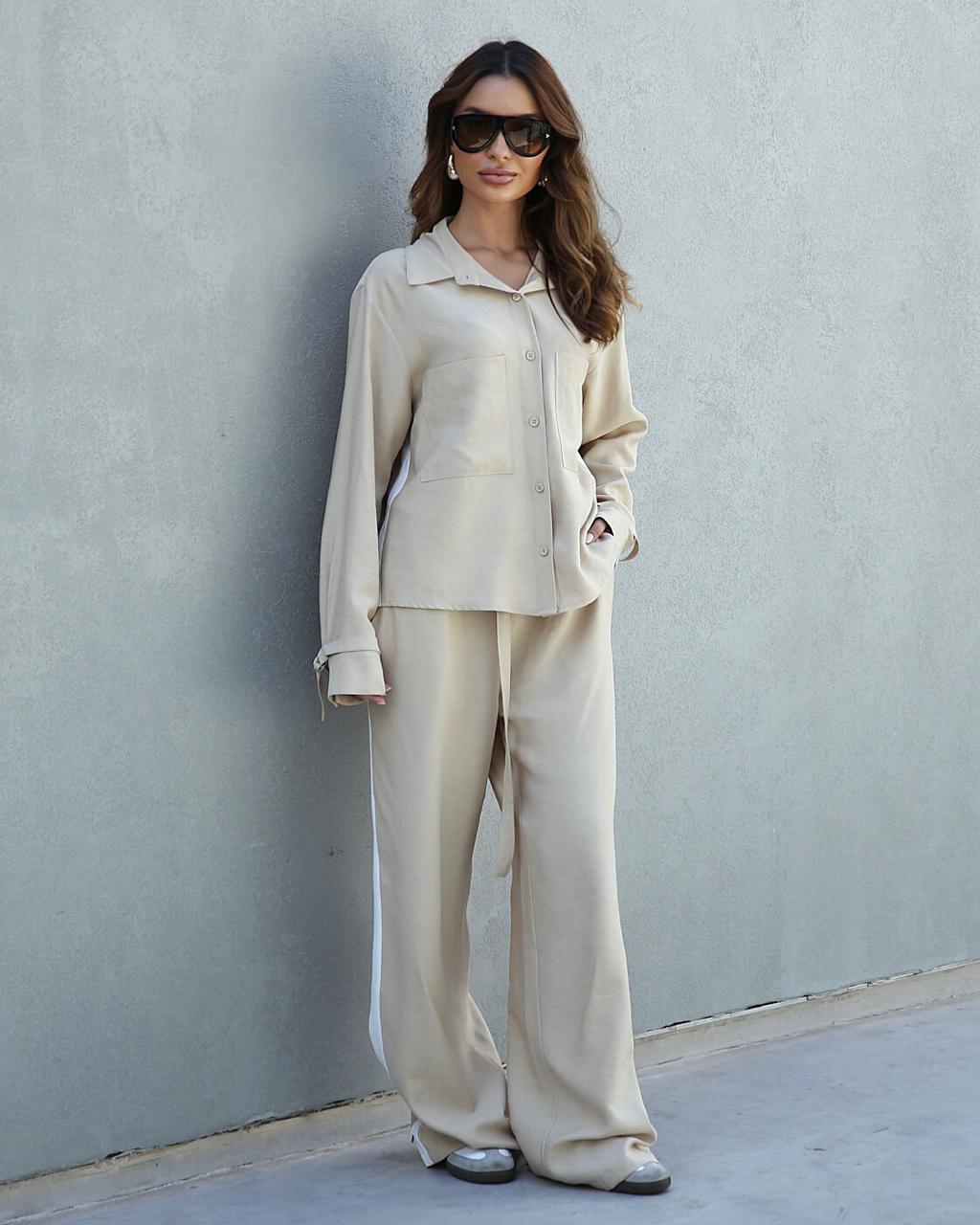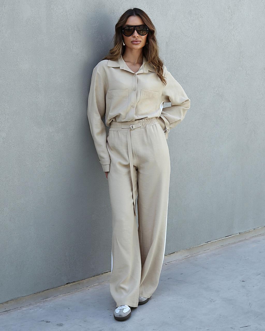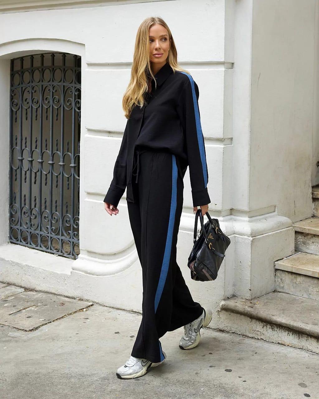 CONJUNTO CALÇA RETA E CAMISA COM FAIXA LATERAL – PEÇA ÚNICA