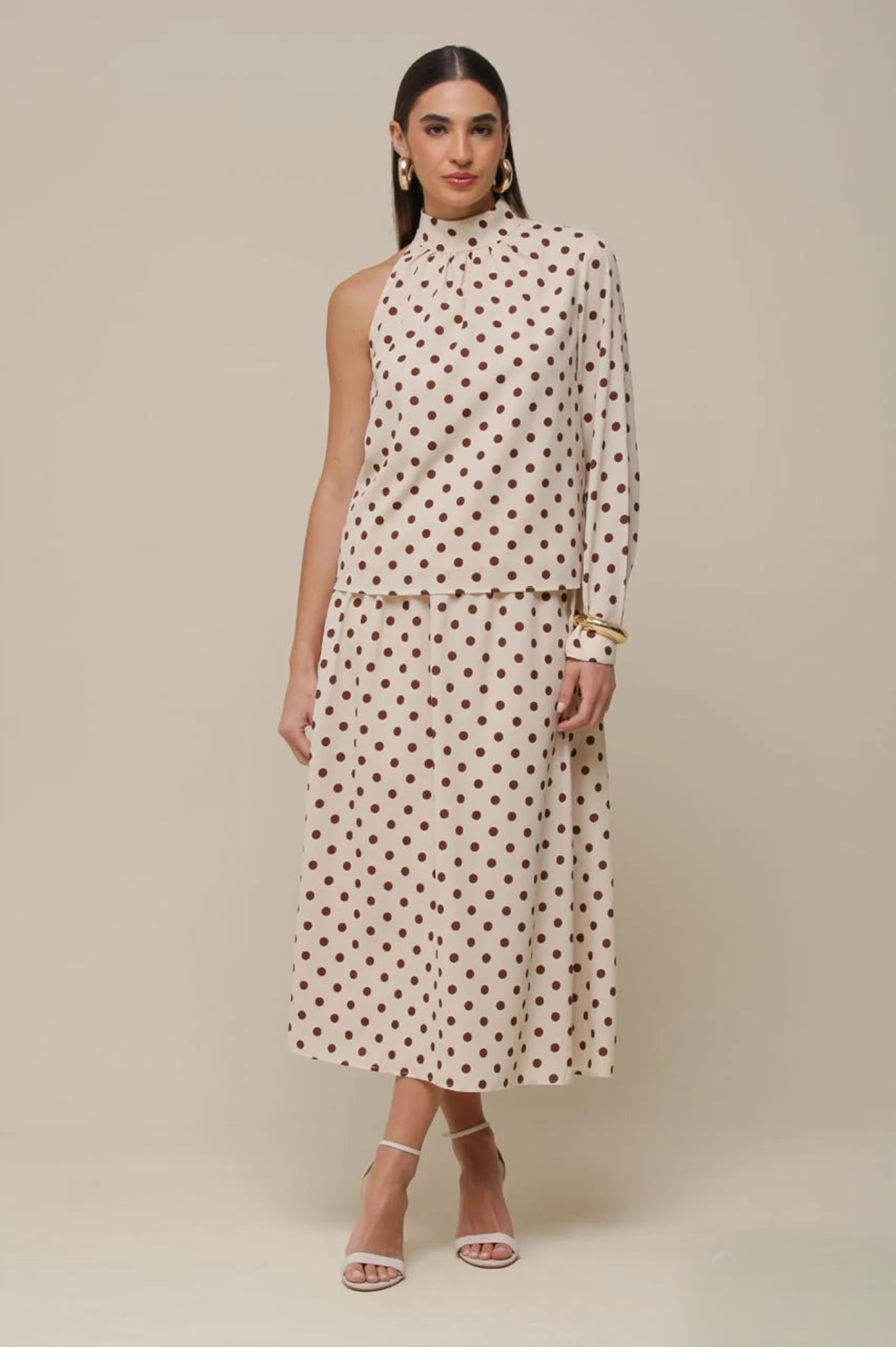 CONJUNTO DE SAIA MIDI ENVIESADA E BLUSA DE ALÇA