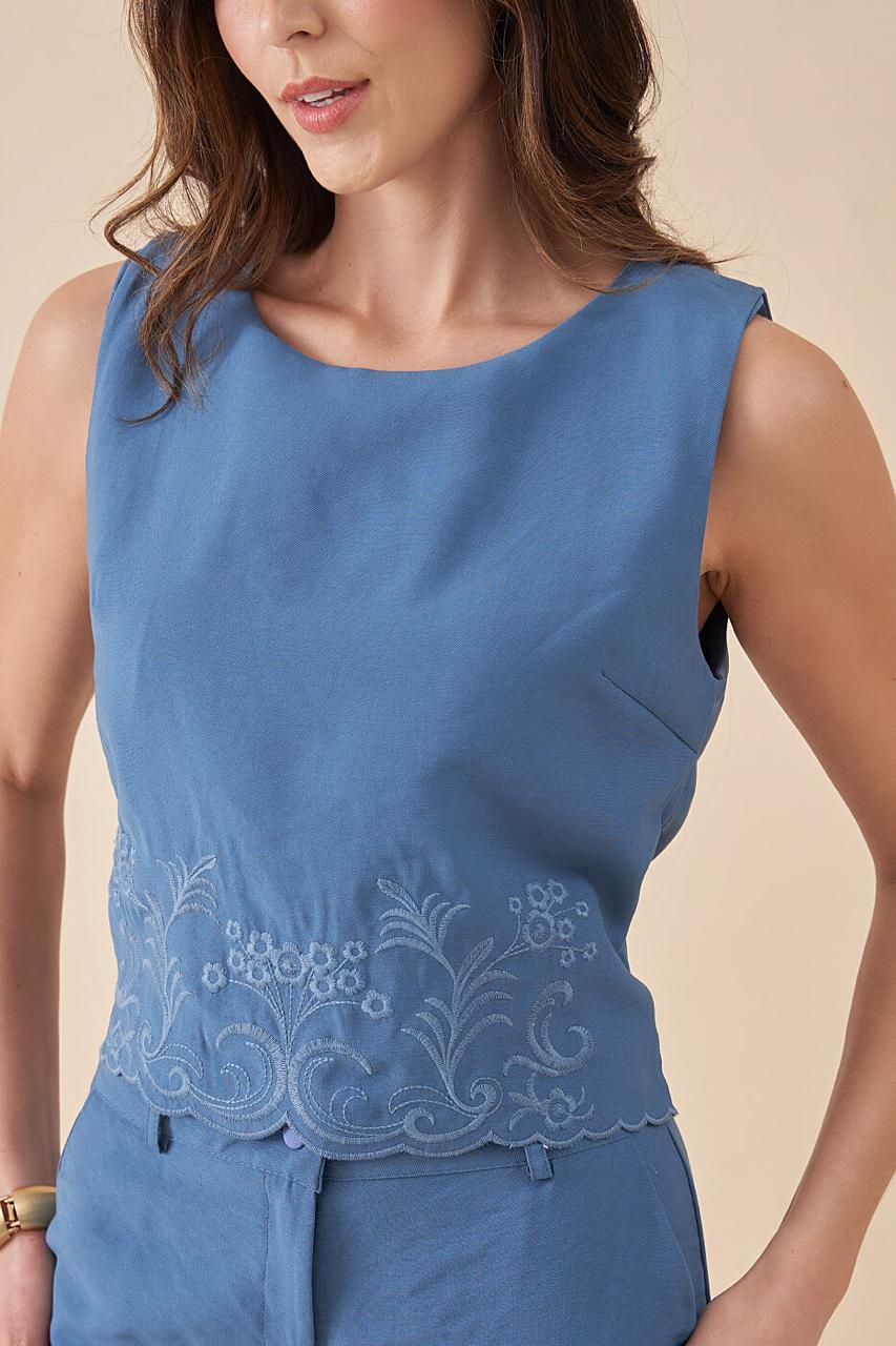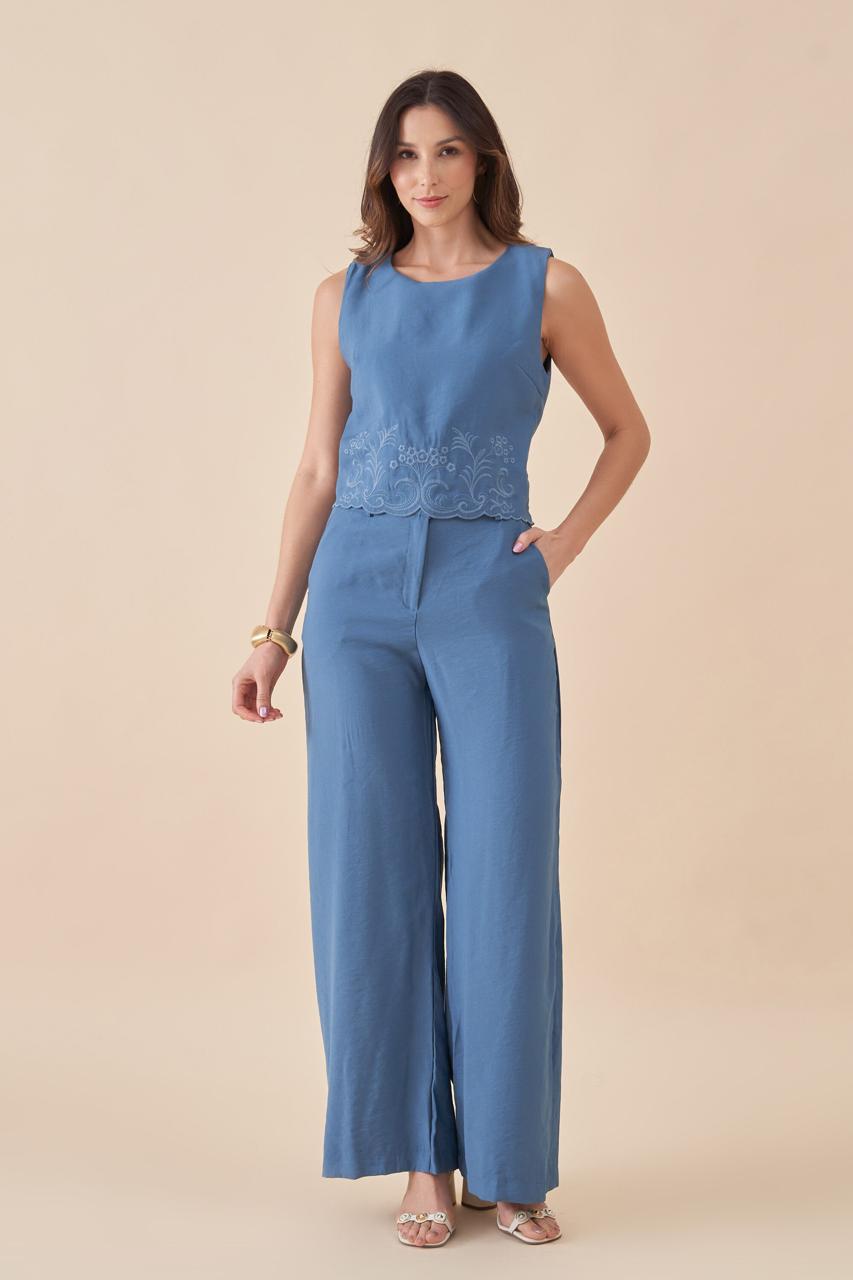 CONJUNTO DE BLUSA C/ BORDADO E CALÇA