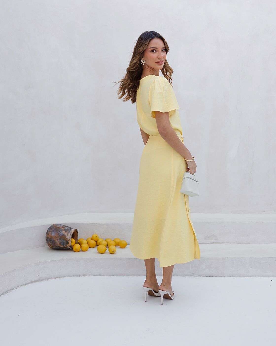 VESTIDO LINHO MIDI DETALHE V TOM SUR TOM
