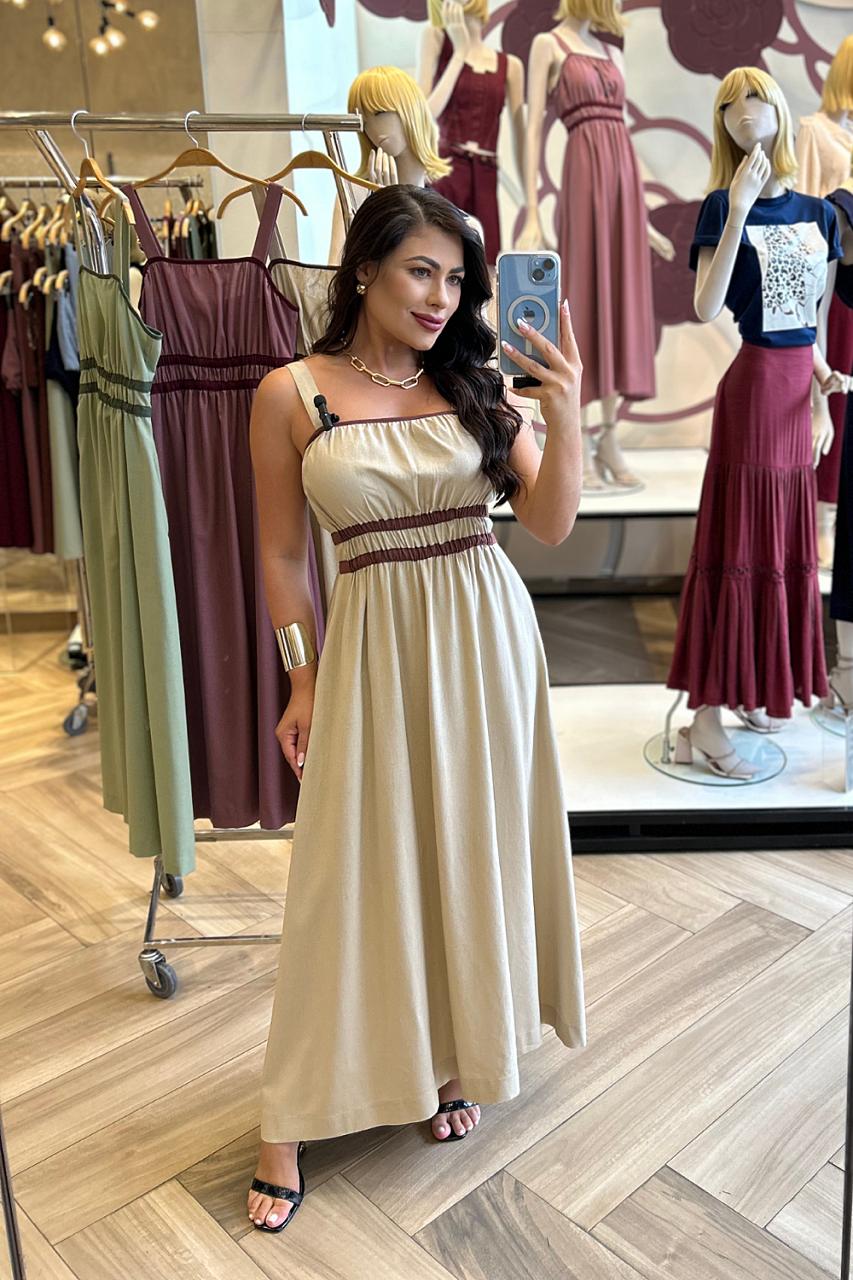 VESTIDO LINHO FRANZIDO C/ DETALHE BICOLOR
