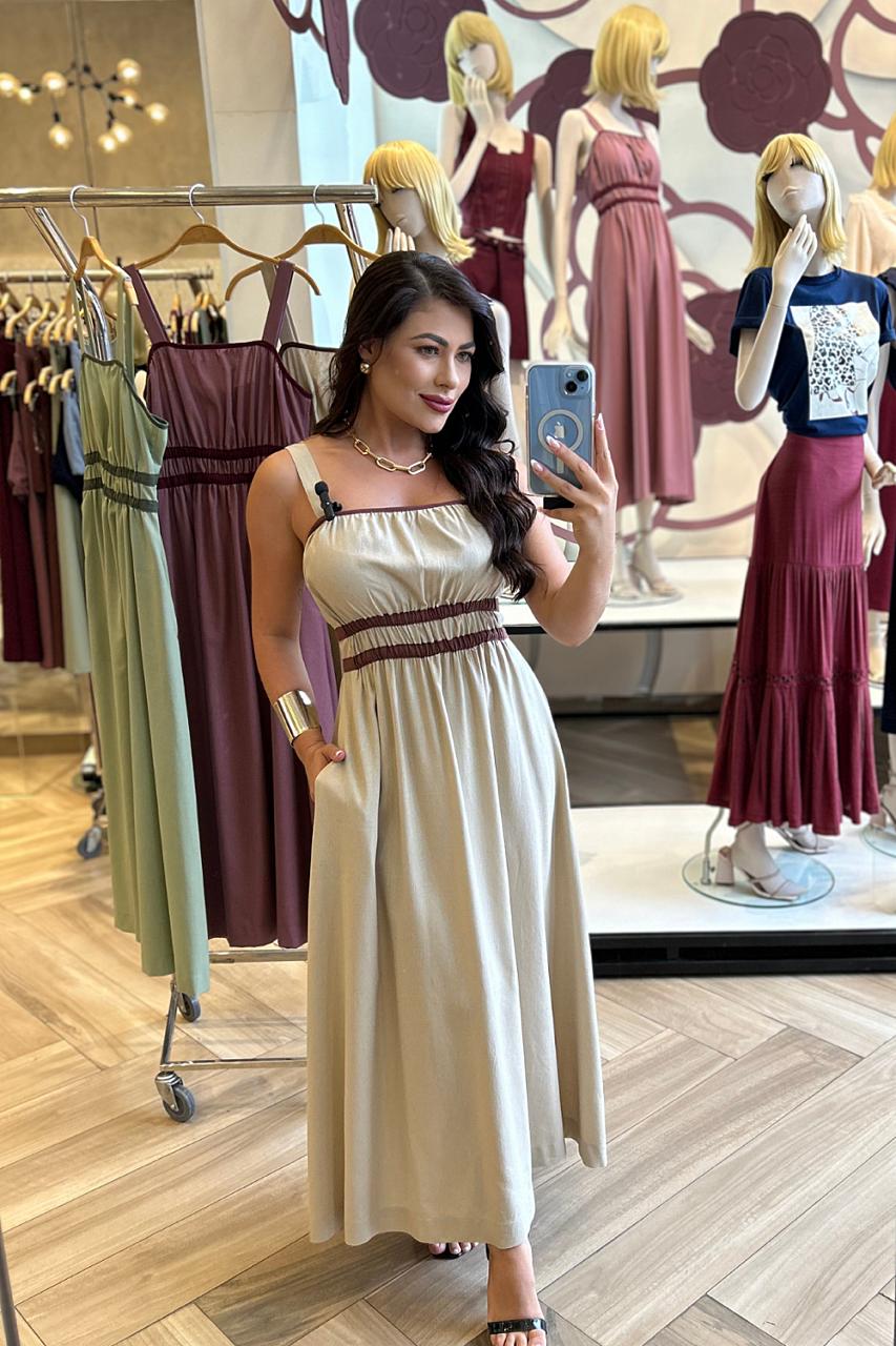 VESTIDO LINHO MIDI DETALHE V TOM SUR TOM