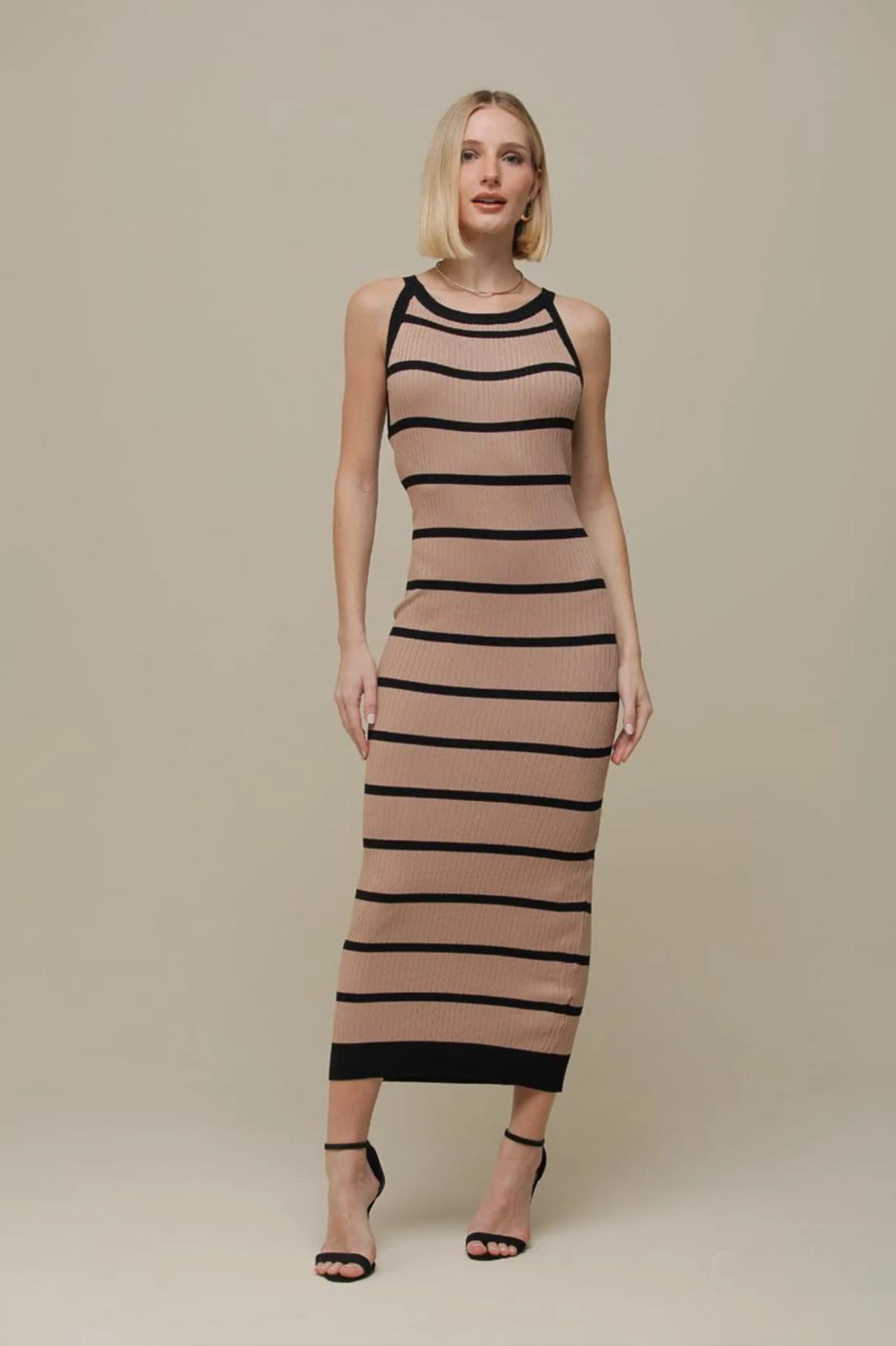 VESTIDO TRICOT LISTRADO CAVA AMERICANA – PEÇA ÚNICA